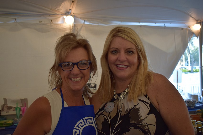 "Yia Yia's Attic" volunteers Julie Couch and Carol Bourbeau take a break from visitors.