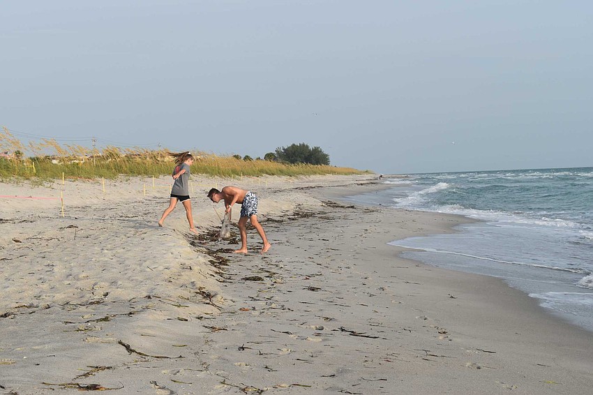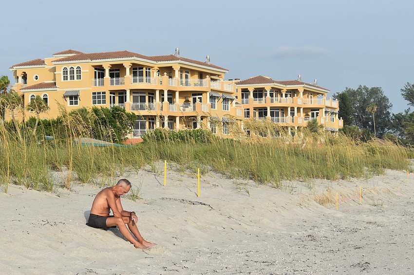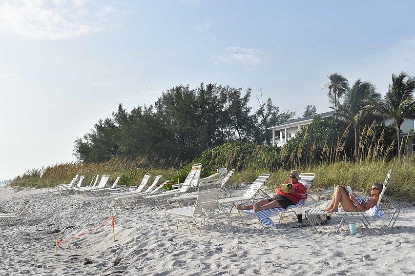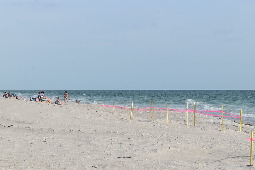 Beachgoers and turtle nests share the sand at the access point at 3175 Gulf of Mexico Drive.