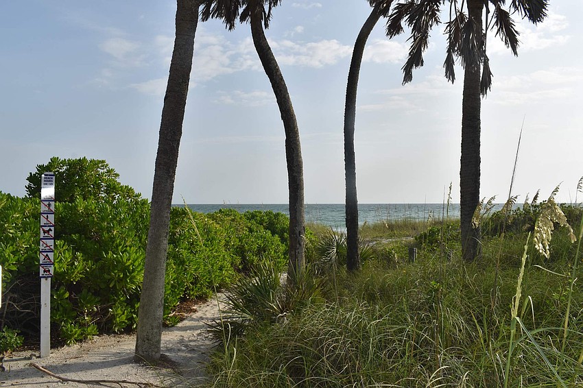 At 3355 Gulf of Mexico Drive, trees and shrubs give the beach access a more wild-jungle feel.