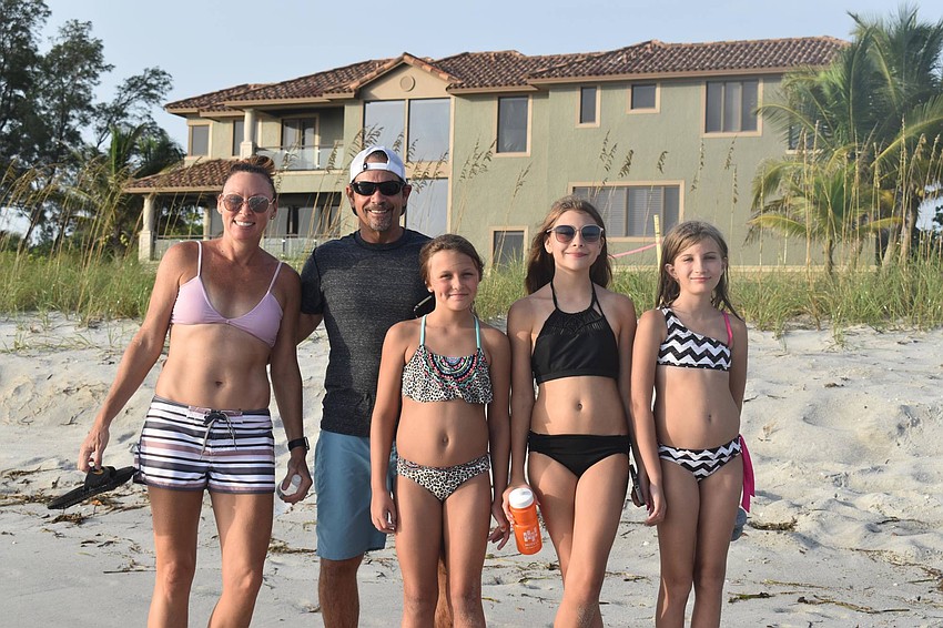 Kirsty, Dale, Kirsten, Sadie and Alexi Pitts walk along the beach on the evening of July 8.