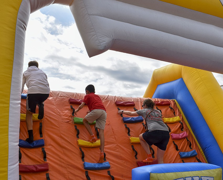 Nolan Bruns, 5, climbs his way through the obstacle course.