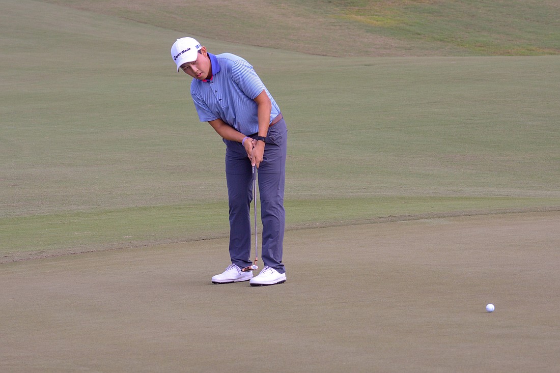 Dylan Wu putts to par the No. 18 hole at Lakewood National. He finished six under par on day one of the LECOM Suncoast Classic.