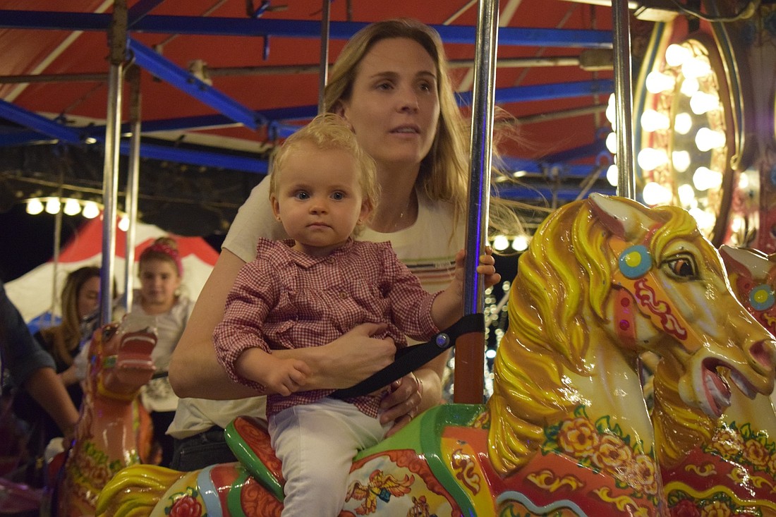 Lakewood Ranch's Nicole Stepaeak rides on the carousel with her daughter, Stella.