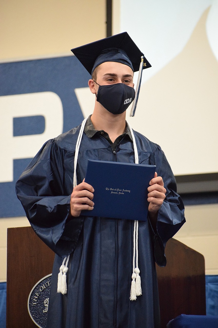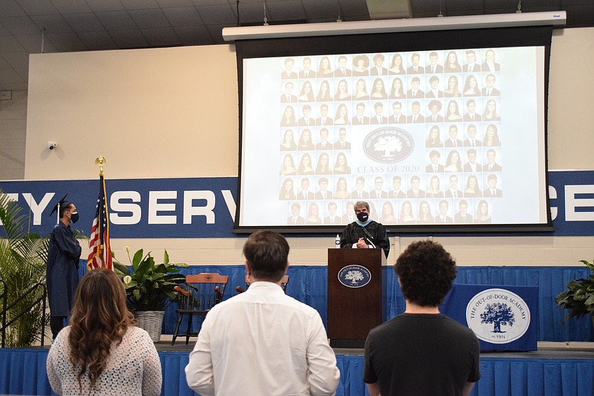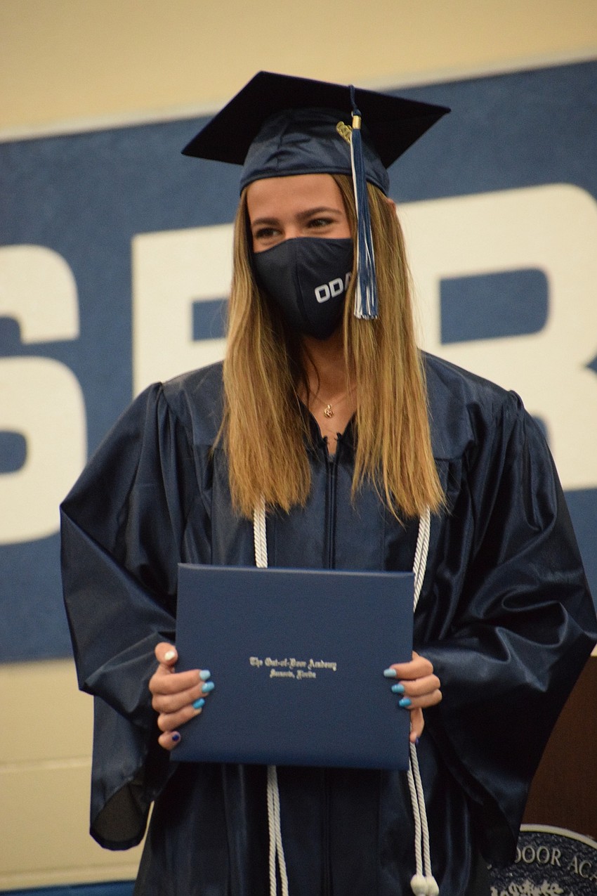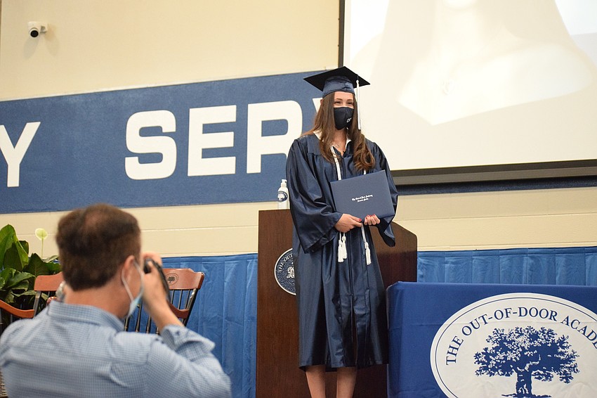 Laura Davenport, a senior at The Out-of-Door Academy, stood on the stage proudly in her navy blue cap and gown and ODA mask while Head of School David Mahler talked about her.