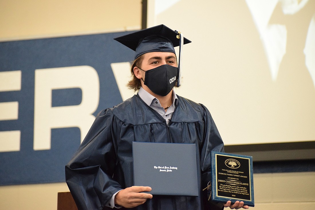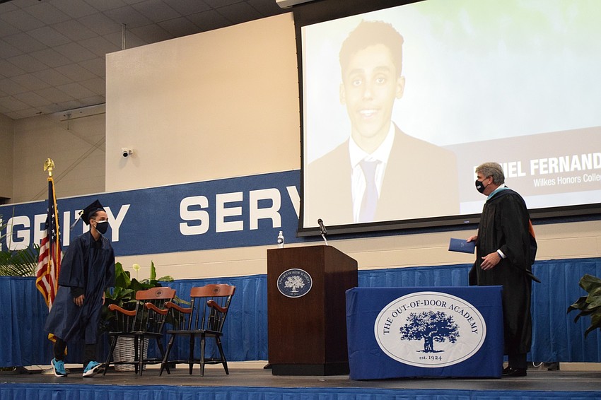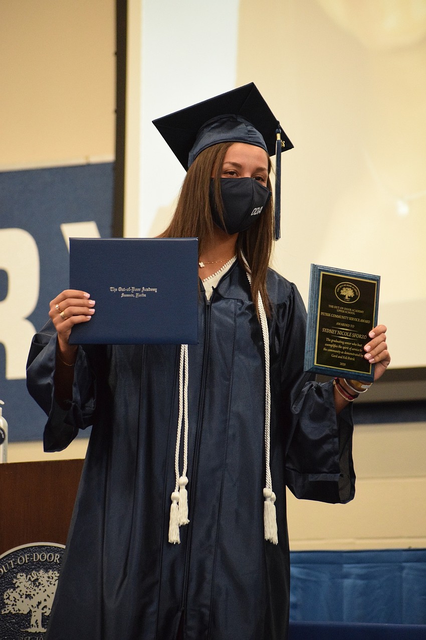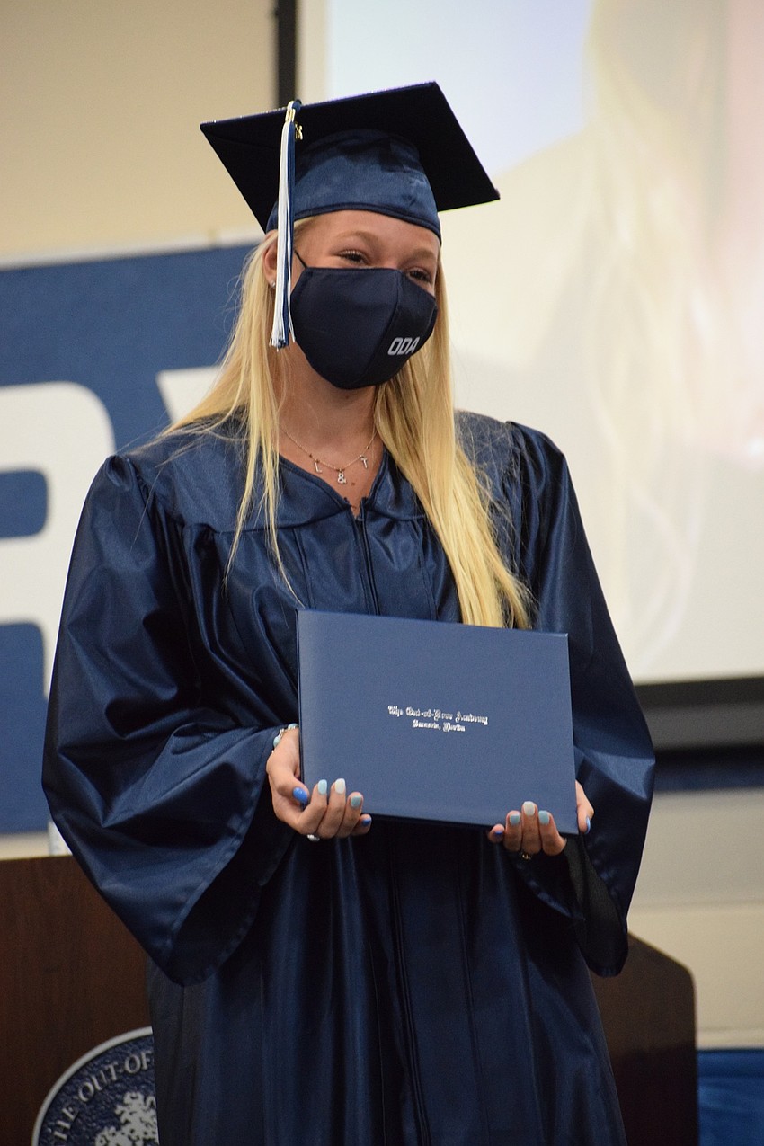 Laura Davenport, a senior at The Out-of-Door Academy, stood on the stage proudly in her navy blue cap and gown and ODA mask while Head of School David Mahler talked about her.
