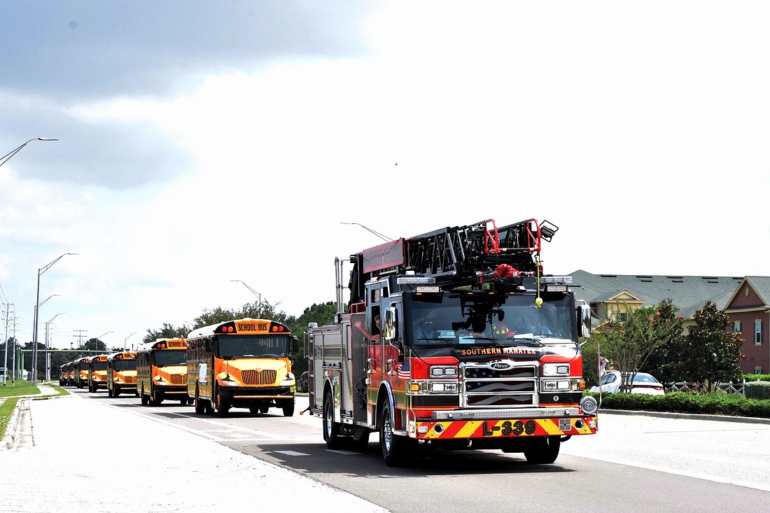 The School District of Manatee County's Manatee Strong parade includes a firetruck from Southern Manatee Fire and Rescue, at least 14 school buses and members of the Manatee County Sheriff's Office.