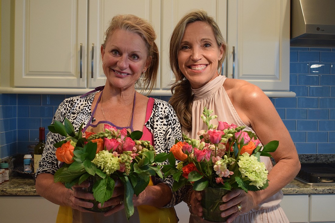 Robert E. Willis Elementary School fifth grade teachers Jacquie McLaurin and Suzanne Tomlin take a flower arrangement class virtually as part of Teacher and Staff Appreciation Week.