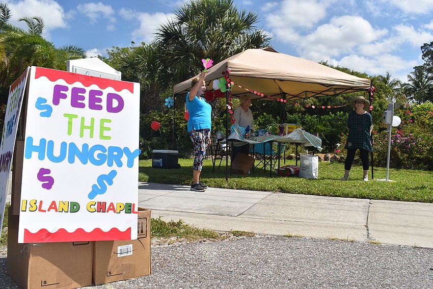 Lesley Rife spearheaded the volunteer event, after Vickie Van Meier wrote to her asking if the chapel could get such an event together. They didn't want to have people streaming in and out of the chapel itself, so Rife, Van Meier and a group of several other women decided to do it in the parking lot. Then, they decided to bring out signs, noisemakers and a tent along Gulf of Mexico Drive so people could see it and potentially drive back to donate. Cars honked and waved, and even a roofing crew across the street yelled good wishes to the group.Â