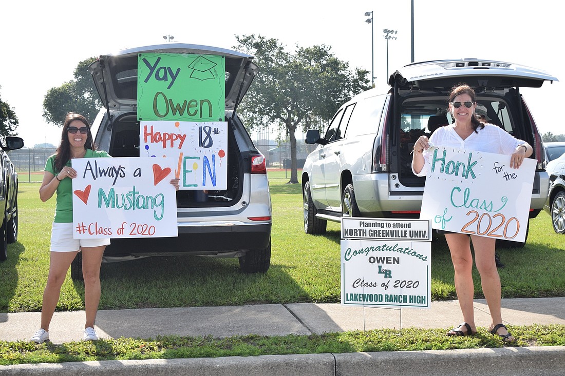 When Samantha van der Sommen, a senior at Lakewood Ranch High School, drove down Mustang Alley on May 21, she saw a sea of green and white balloons, homemade signs and dozens of parents lining the streets cheering.