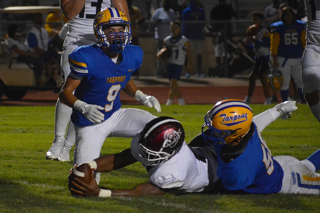 The game would enter halftime tied at 21, but the Pirates' offense could not keep up with Busha and the Tarpons in the second half and lost, 35-21.Â