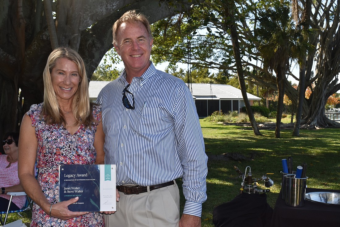 A home in Longbeach Village was the scene of the 2021 Michael Saunders & Co. awards on April 8 as agents from the Longboat Key offices came to accept awards and celebrate surviving and thriving throughout the pandemic.Â