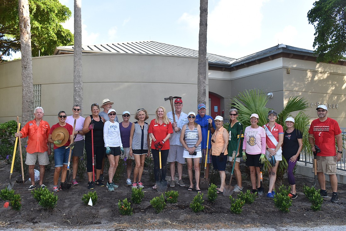 A group of Longboat Key Garden Club volunteers made quick work of 120 plants at the north end fire station on July 31.Â