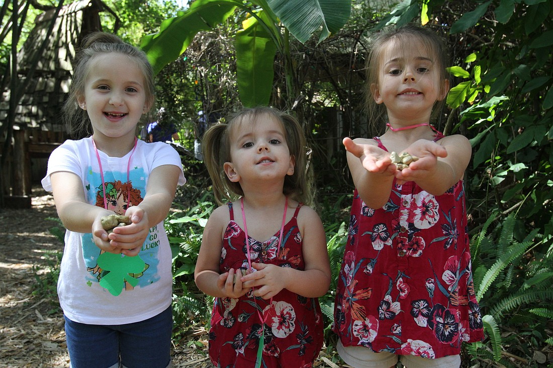 Josephine Elliott found gold with Hallie and Lily Gray at Children's Garden's Leprechaun Hunt on March 13, 2021.