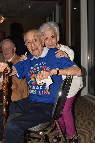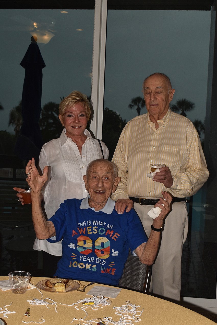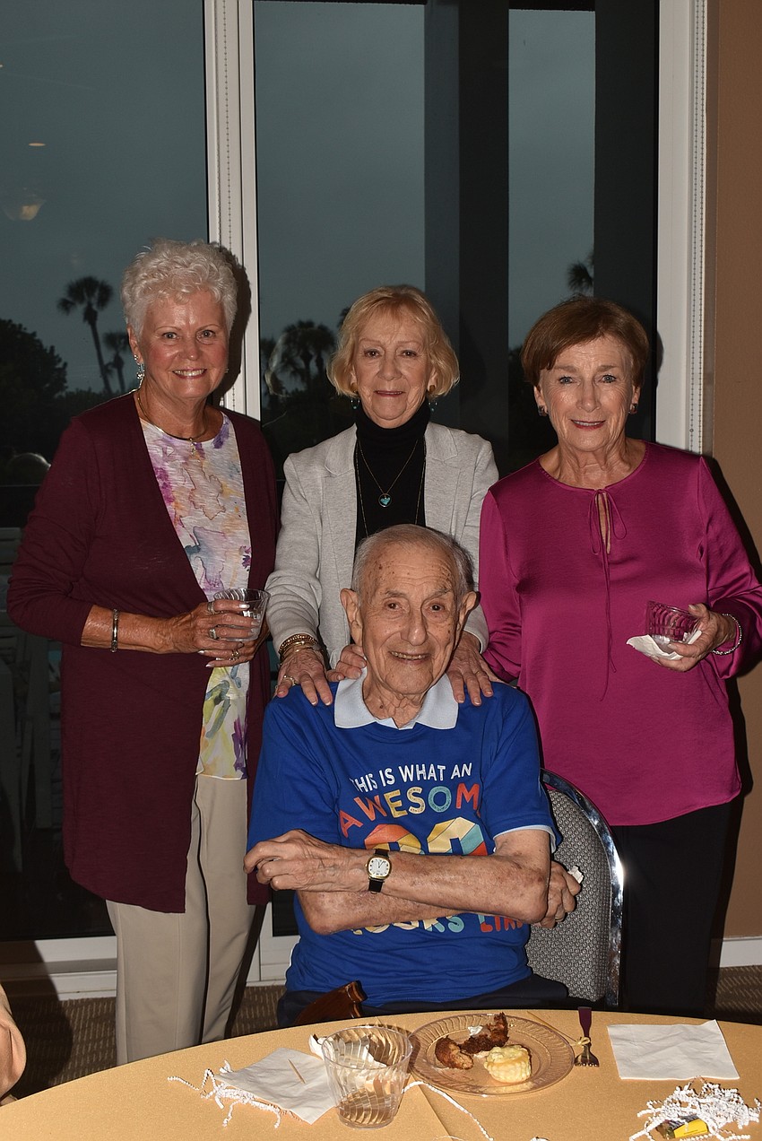 The 99-year-old — sporting a T-shirt that said "This is what an awesome 99-year-old looks like" — was never alone at his party on Nov. 5. Friends surrounded him at his table on his birthday all evening, bringing him snacks and well-wishes.