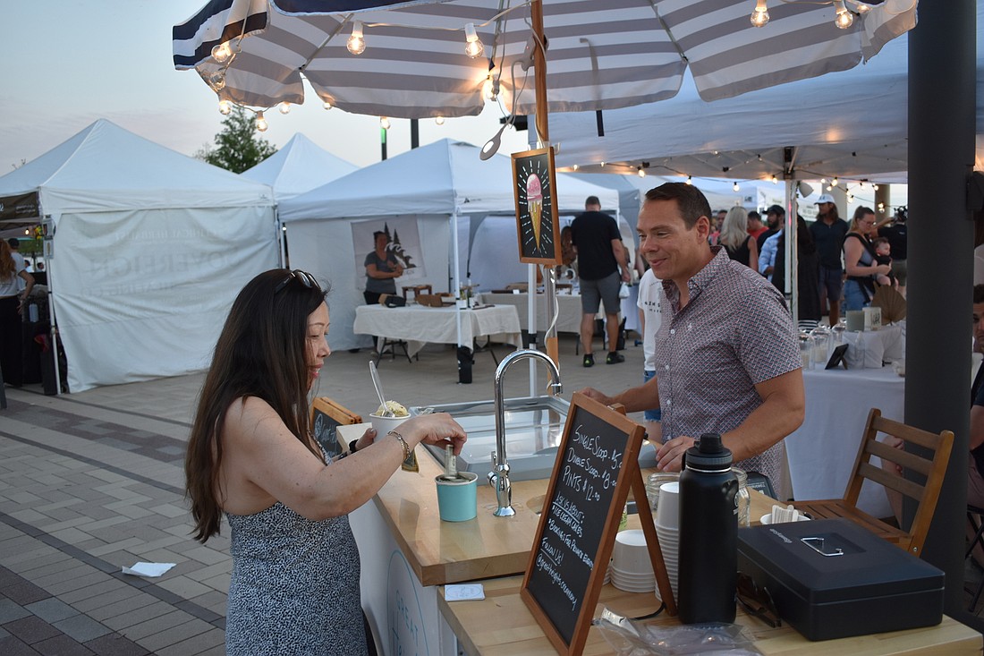 Lakewood Ranch's Sylvia McGinn buys a treat from Braden Wood's Ryan Edwards, who owns Great Heights Creamery.