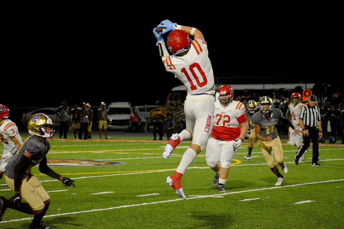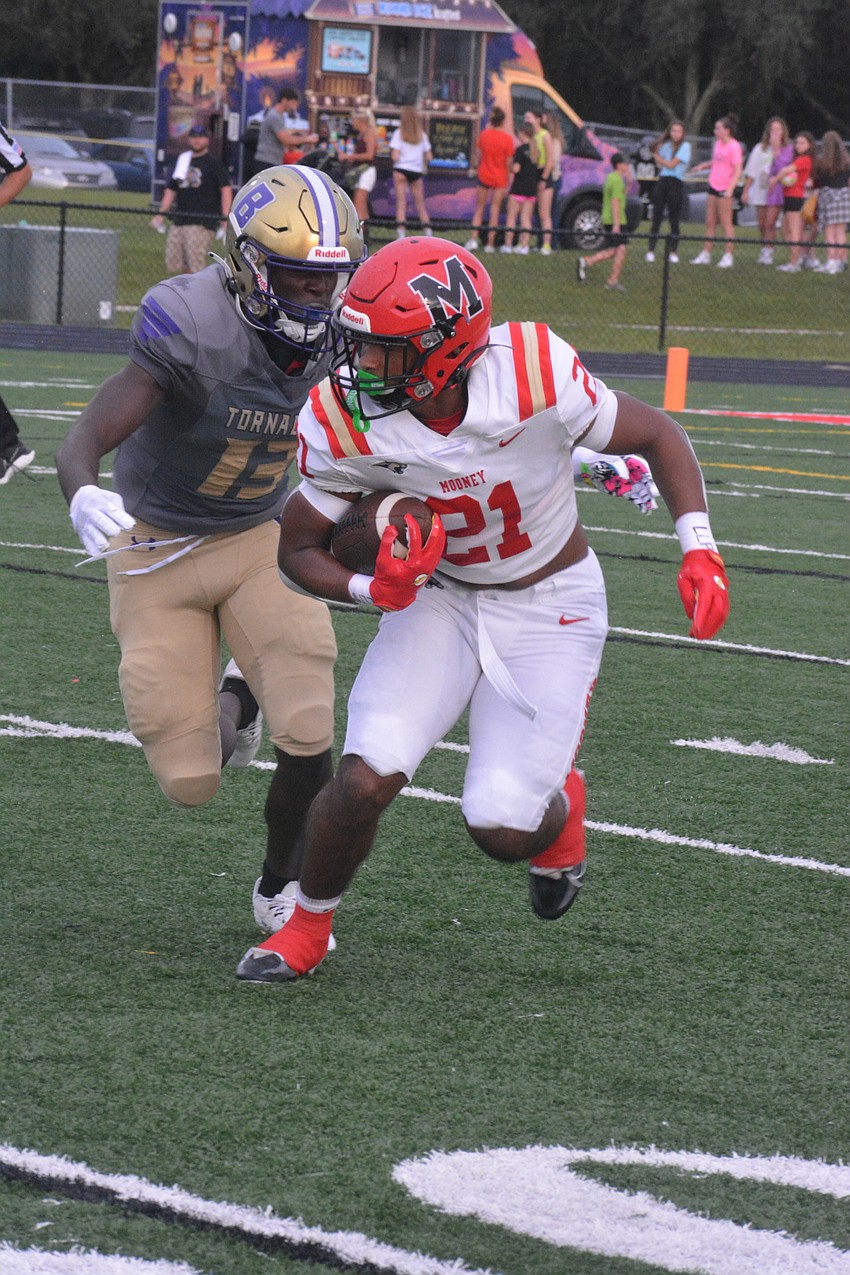 It was a tight game throughout, if not the offensive showcase that some fans might have expected after both teams scored more than 50 points in their respective preseason contests last week. In fact, neither team scored an offensive touchdown Friday night. But Mooney jumped out to a 10-0 lead in the first quarter, thanks to defensive and special teams plays, and held on to beat the Tornadoes 10-9.
