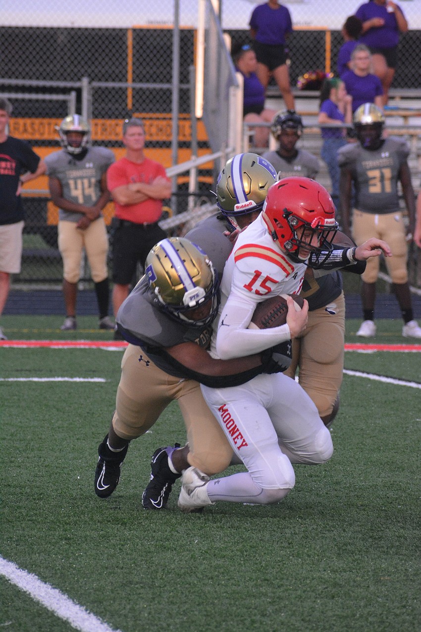 The Mooney special teams unit also continued to come up large, making perhaps the biggest play of the game when it blocked a 37-yard Booker field goal attempt that, if converted, would have given the Tornadoes a 12-10 lead with just over two minutes remaining. Earlier, the unit stopped Booker on an extra-point attempt that would have tied the game.Â