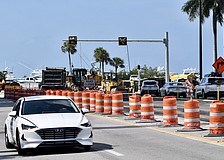 The Gulfstream roundabout may be the busiest in the city with vehicles bound to and from the barrier islands mixing with through traffic at a multi-lane, uniquely shaped circle.