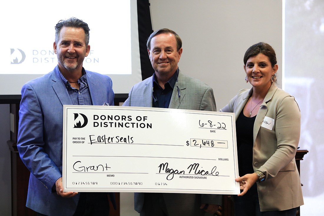 Representatives from various nonprofits accepted checks with Donors of Distinction members.