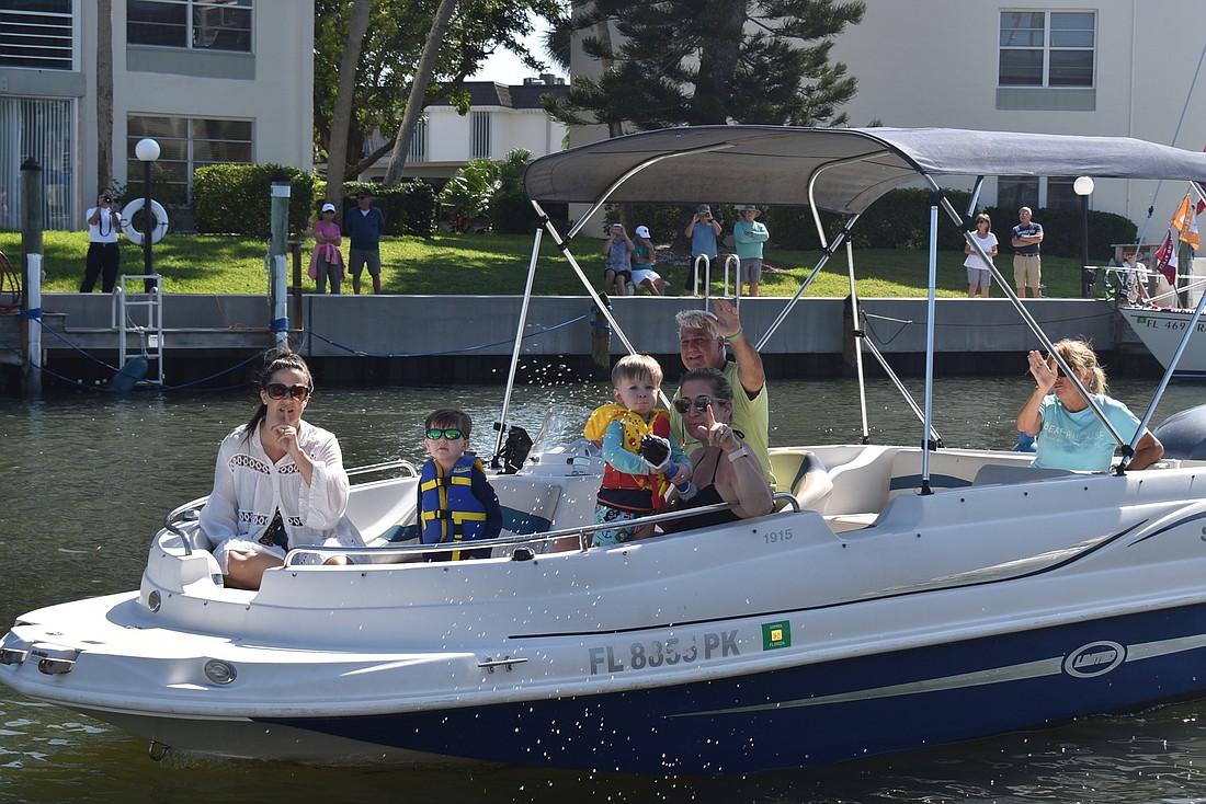 Father Robert Dziedziak from St. Mary, Star of the Sea Catholic Church said a blessing before boats began to come through. By the end of the day, 20 boats, including the Longboat Key Fire Department boat, and 23 stand-up-paddleboarders and kayakers came through.