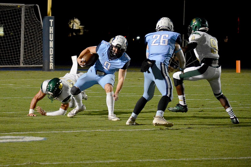The Thunder (9-1) fumbled its chance at a perfect season with a 21-0 home loss to rival St. Stephen's Episcopal (5-5) Friday night in the Sunshine State Athletic Conference 5A semifinals. The Falcons will advance to the SSAC state championship game Nov. 12 against Legacy Charter (6-3); the Thunder will have to wait until next season to get revenge.