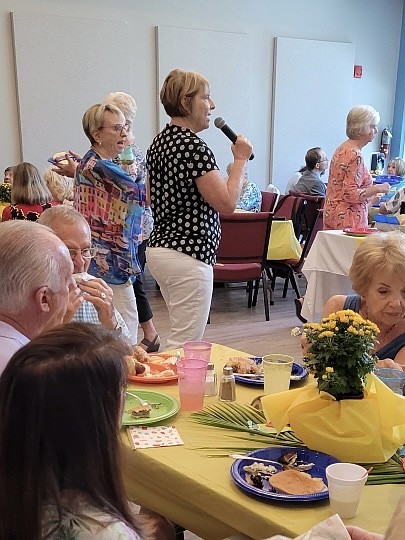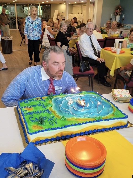 The Longboat Island Chapel threw a welcome back party for their snowbird members on Sunday. As Rev. Brock Patterson commented during his sermon on the aromas coming from the kitchen, he had no idea the baking was for him.