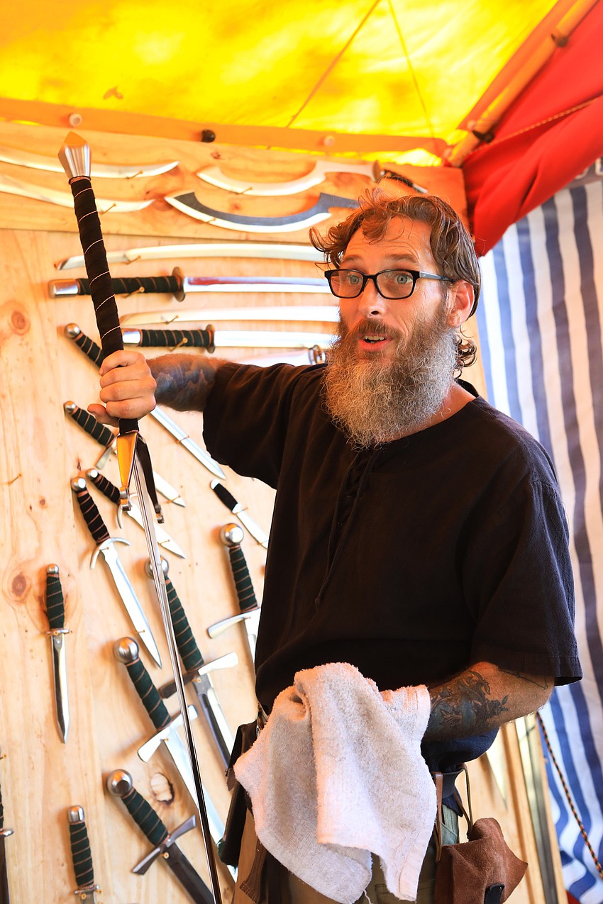 He said he’s played peasants and kings, but these days Hawkins has a more narrow task as he helps sell swords, maces, katanas and other weaponry with the Legacy Forge company based out of Texas.