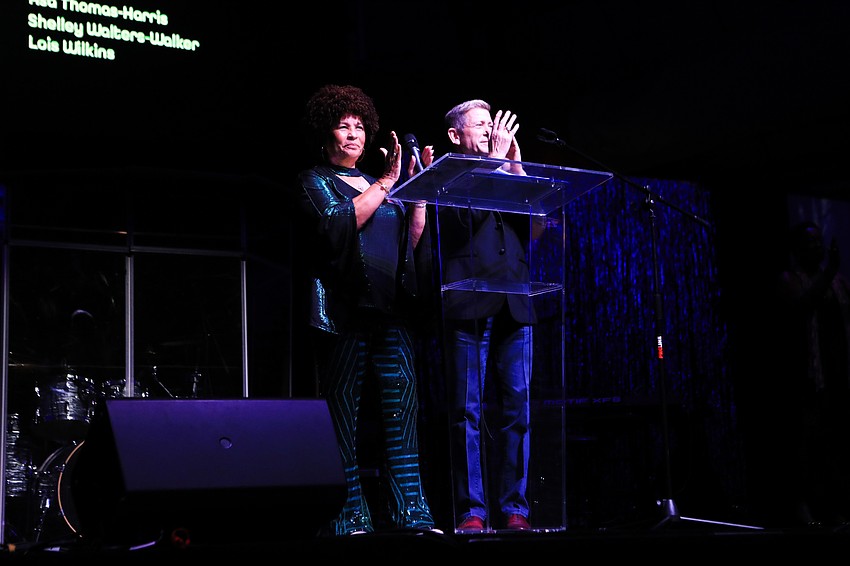 Guests put on some funky attire and met for an hour of mingling before sitting down for the program, which started with words from board chair Doris Johnson. Chairs Angelia Wood and Steven Krause then took the stage to recognize close donors and supporters.Â