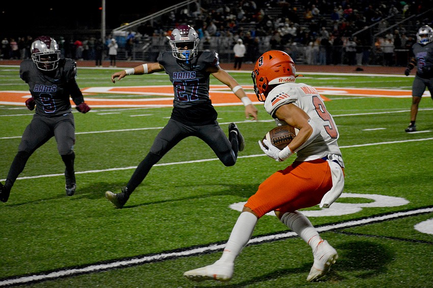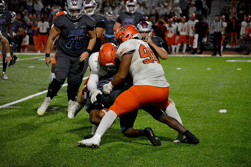 In the fourth quarter, Sarasota would get on the board when Bendever found senior wideout Tyler Pack for a 19-yard touchdown pass. The Rams would regain their 21-point advantage when Dawson found senior wideout Marshall Thompson in the back of the end zone. Thompson made the catch over multiple defenders and tapped his feet inbounds while falling out of bounds.Â
