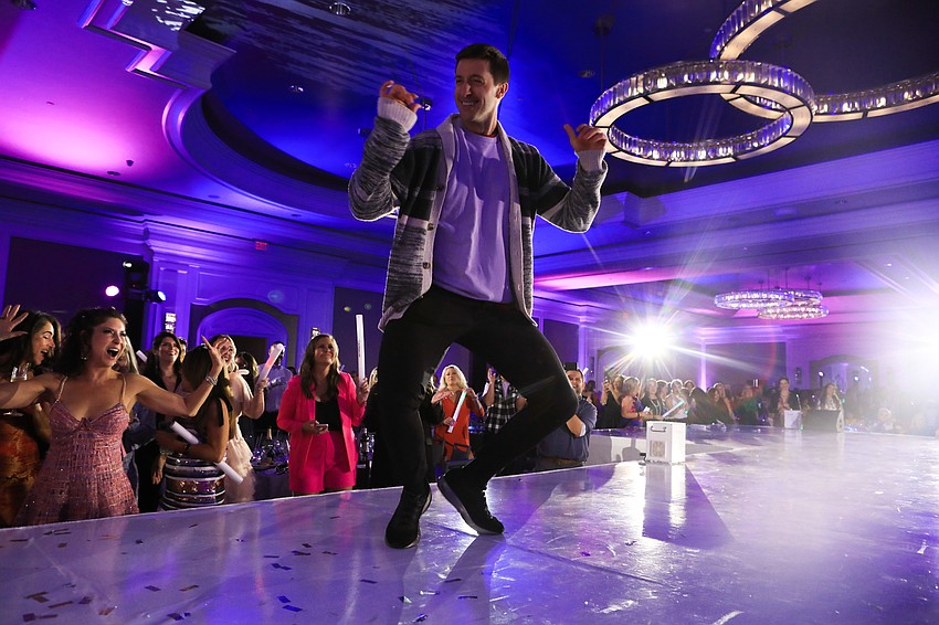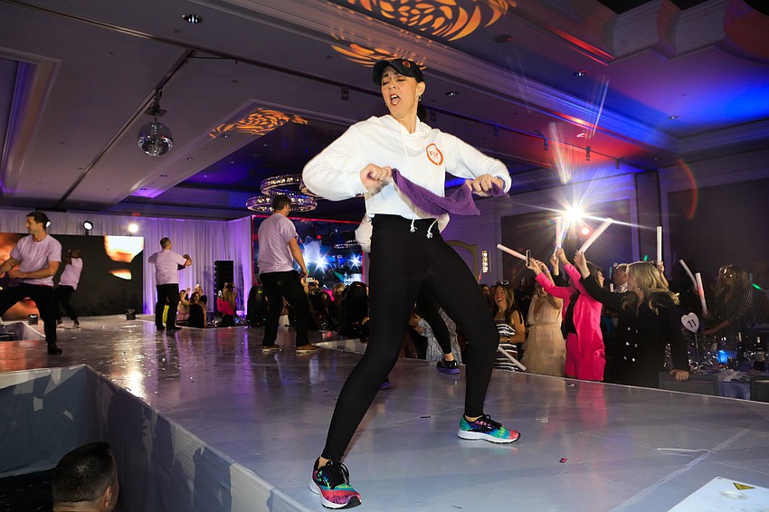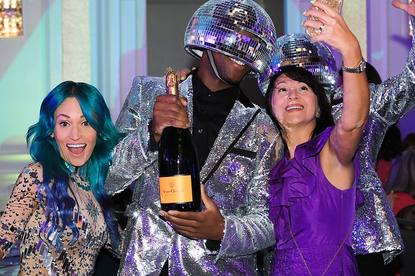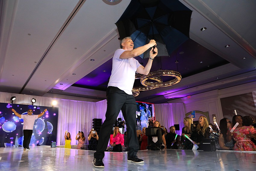 Co-chairwomen Melissa Tomasso and Julie Weintraub took to the stage to thank the audience while Sole Men poured glasses of champagne for those in the crowd.Â