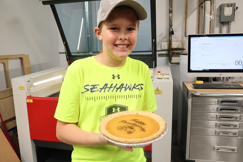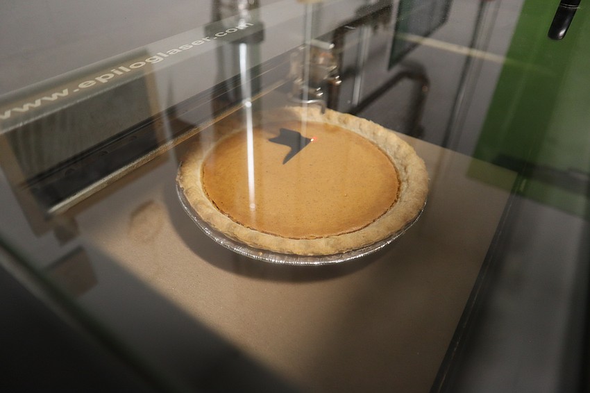 Faulhaber Fab Lab annually hosts a special kind of workshop for those who want bragging rights at the Thanksgiving table. This year, STEM enthusiasts were able to get hands-on experience on choosing a graphic design and having it etched onto their pumpkin pie using the lab’s high-tech laser cutter and engraver.
