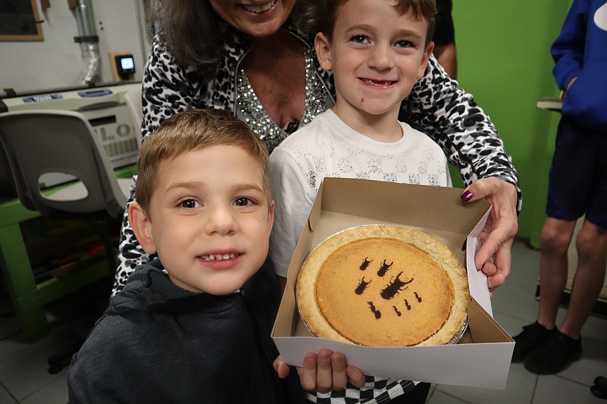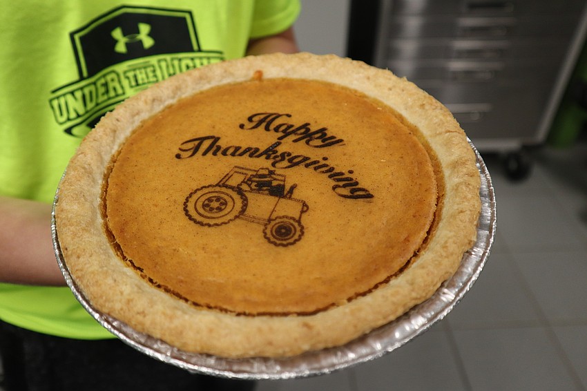 Families were engraving pumpkin pies with lasers.