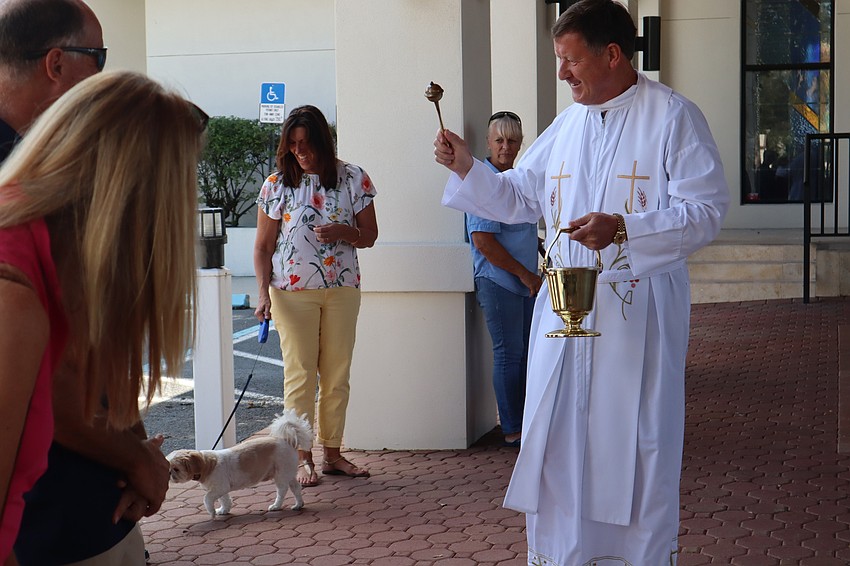 Afterwards, Fr. Cannon sprinkled holy water on each pet and its owners.