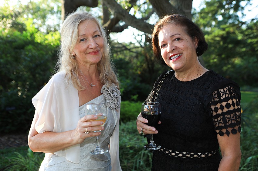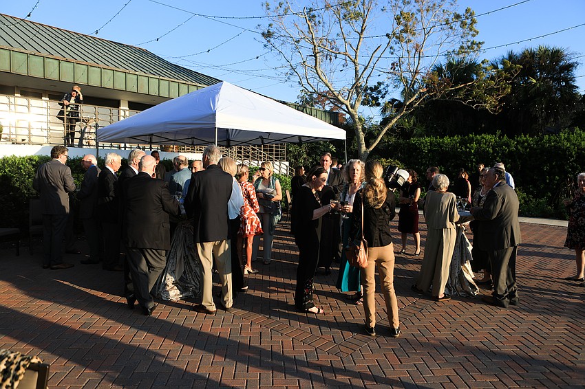 The opera's closest supporters met at the Selby Gardens Event Center late Sunday afternoon for mingling and drinks as the sun set over the bayfront. Guests stopped to have their photos taken at the Marie Selby Botanical Gardens entrance and headed into walk through the grounds before the program started.