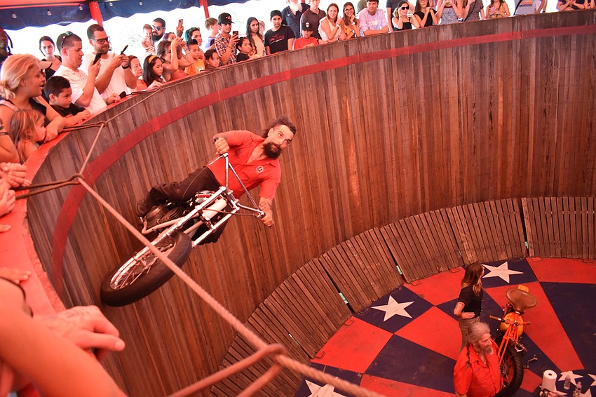 Ricardo Flores, a member of the Myakka City-based Fearless Flores who performed a motorcycle stunt show involving the Globe of Death, said he was "flattered" that the audience stepped into the muddy areas of the grounds in order to watch the show.