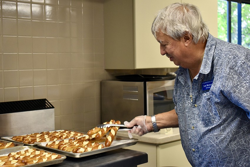 Church member Joey Bertucci took care of the appetizers. He was busy in the kitchen pulling trays of pretzels in and out of the oven. Between pretzel and pretzel bites, he made more than 300 of the salty snacks.