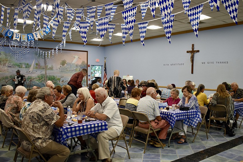 Pick Hall at St. Mary, Star of the Sea Catholic Church looked like a hofbrauhaus Friday night. Steins decorated the tables, and members came dressed in their best lederhosen for the church’s second annual Oktoberfest.