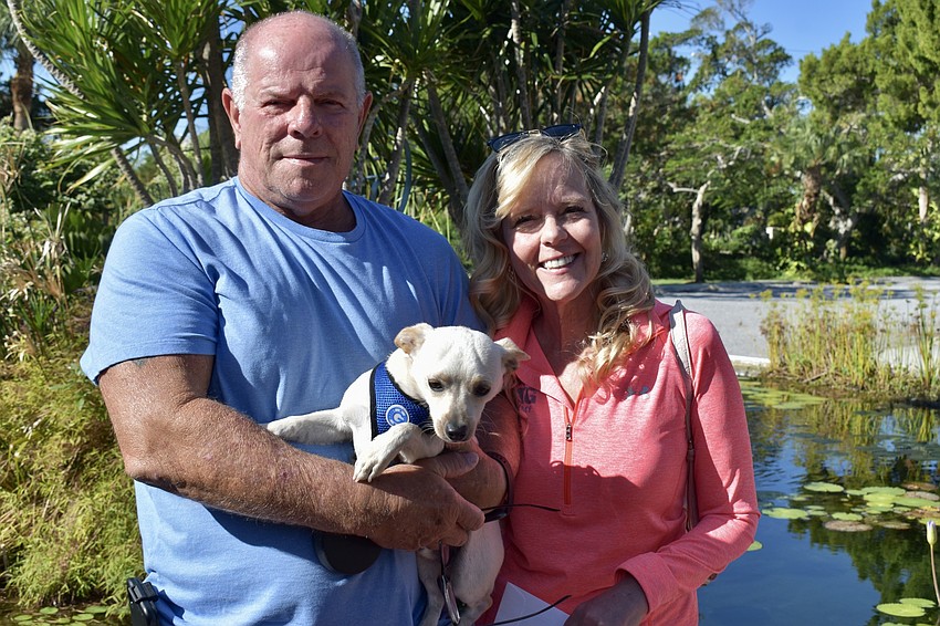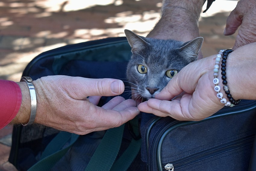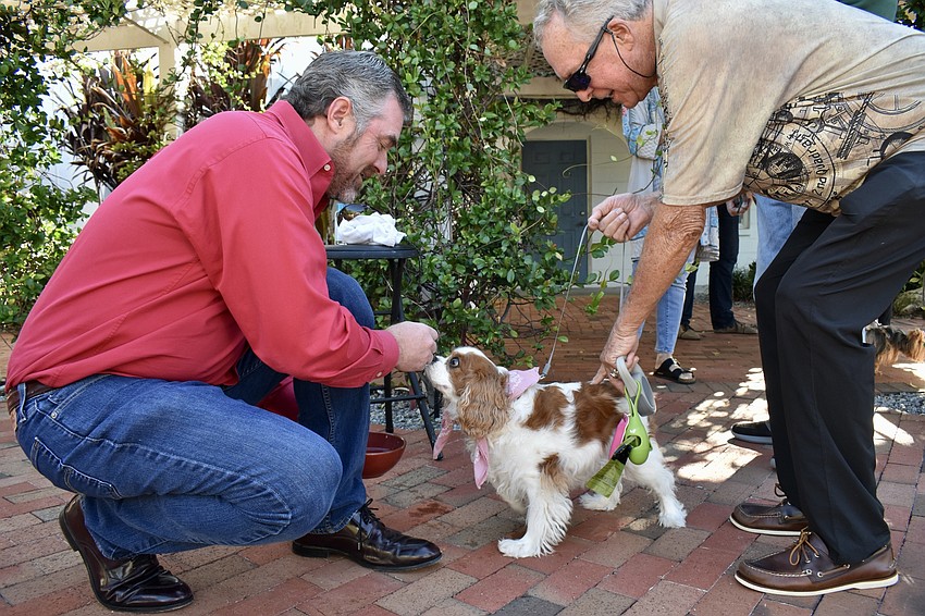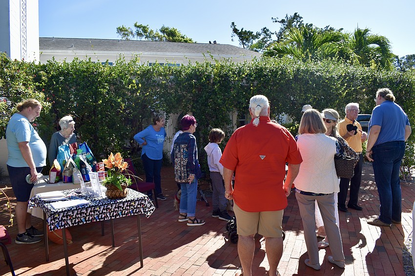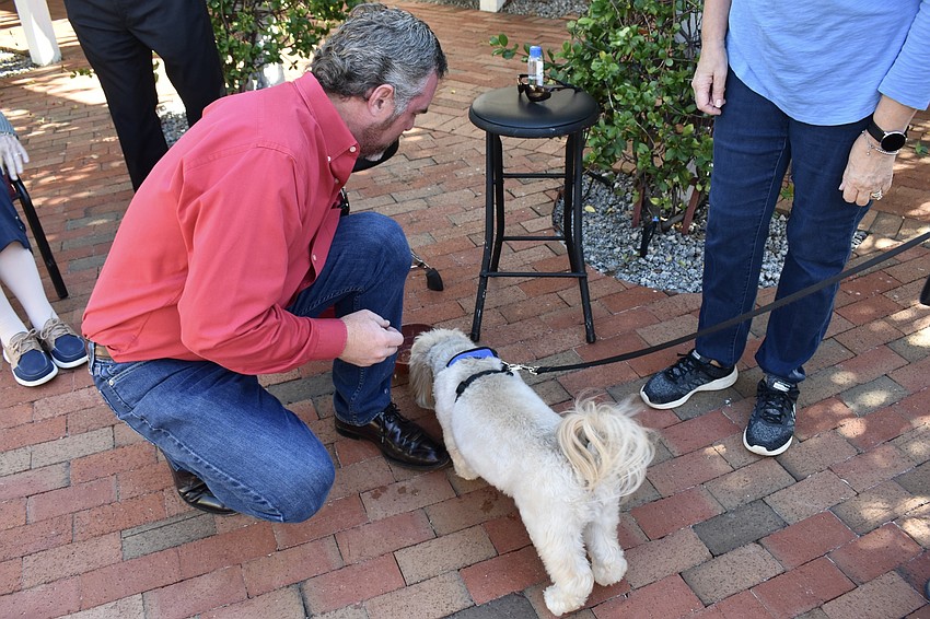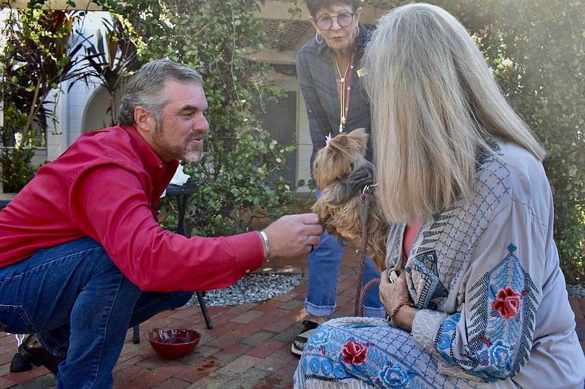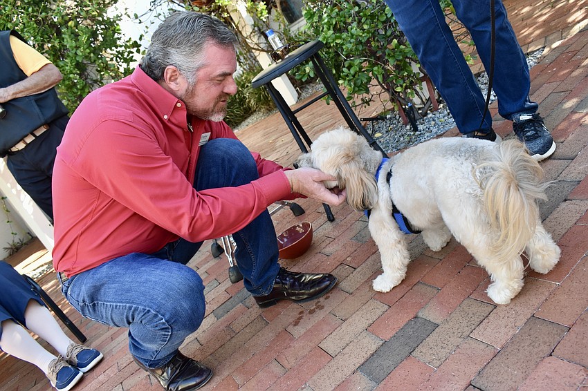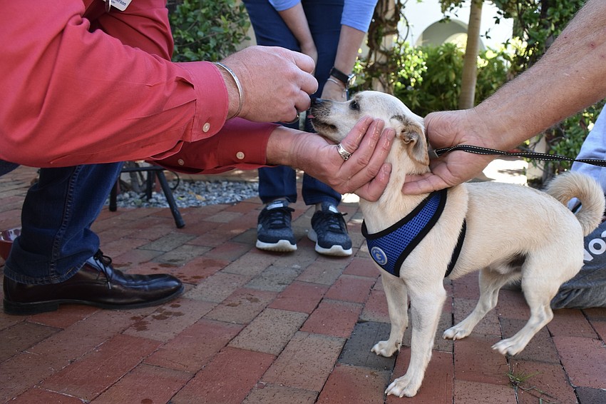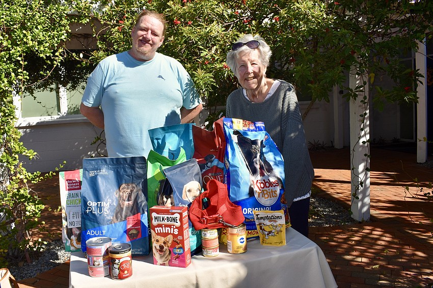 Guests arrived gripping leashes in one hand and pet supplies in the other. They filled a table with food, treats, collars and cash, all of which will be donated to the Humane Society of Manatee County.