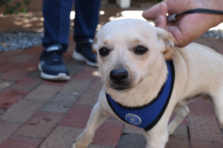 The terrier/chihuahua mixed breed is still a nine-month-old pup fresh out of the Underdog Rescue of Florida. He was sweet as could be, but could not sit still before, during or after the blessing.