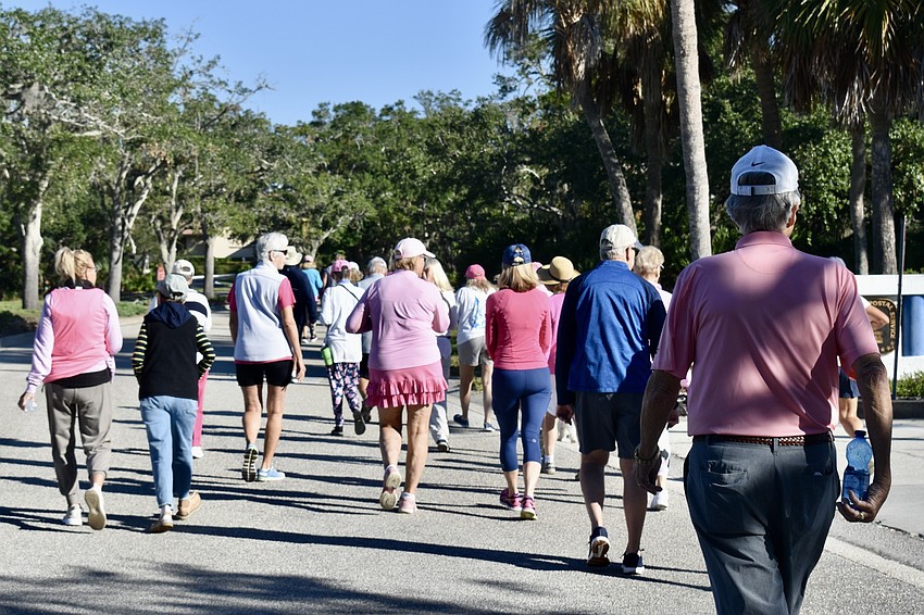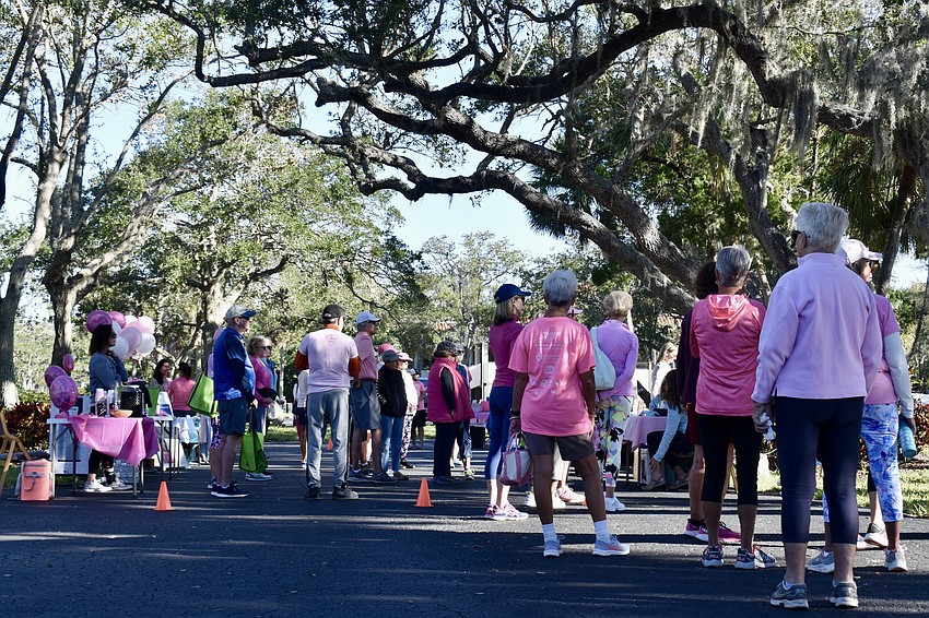 About 60 Longboat Key residents arrived clad shades of pink from blush to fuchsia, ready to stride and socialize. They also raised more than $3,200 for the American Cancer Society.Â
