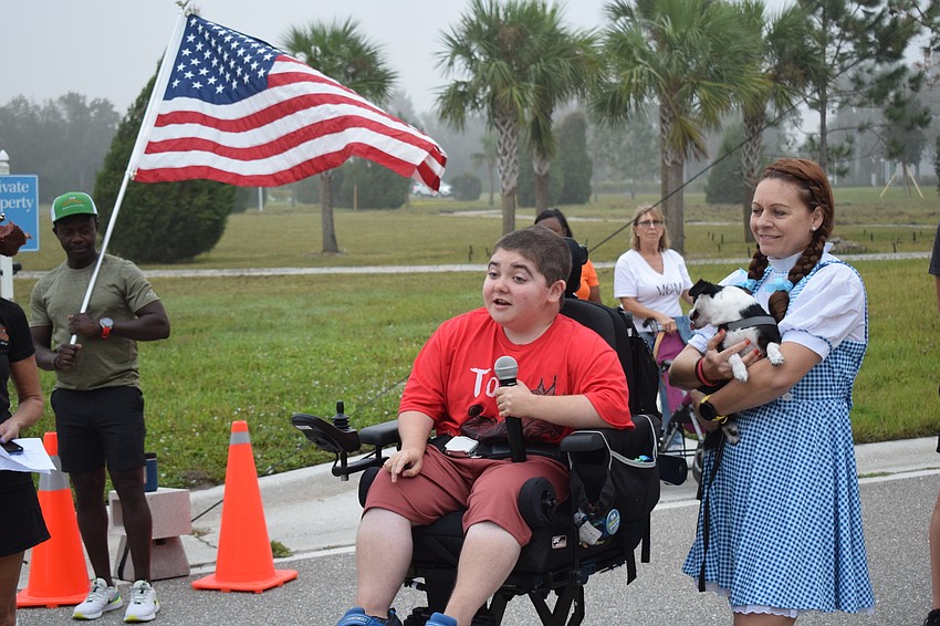 Before the race, Grayson Tullio addressed the crowd and noted that there are many worthy causes that deserve attention.