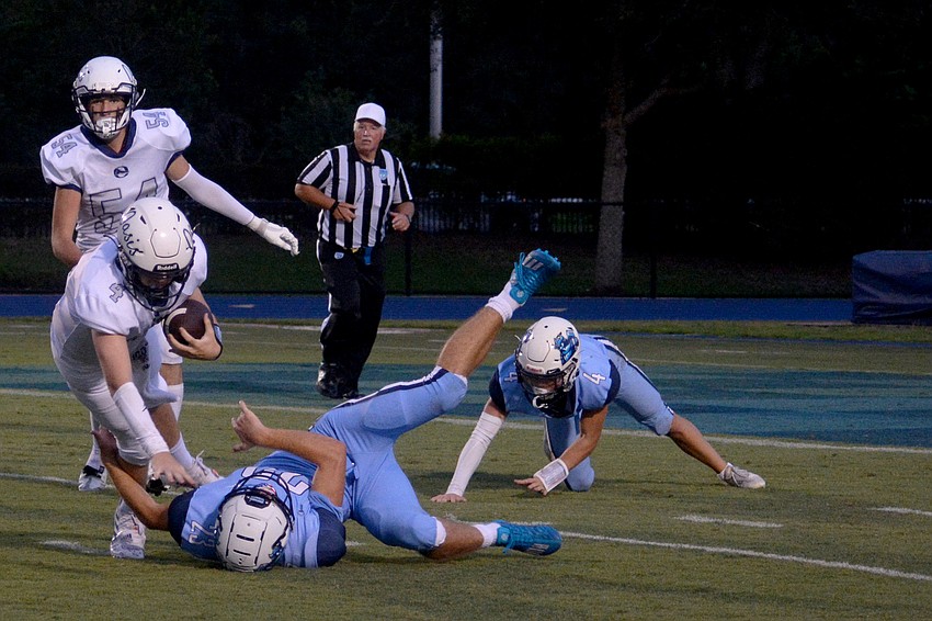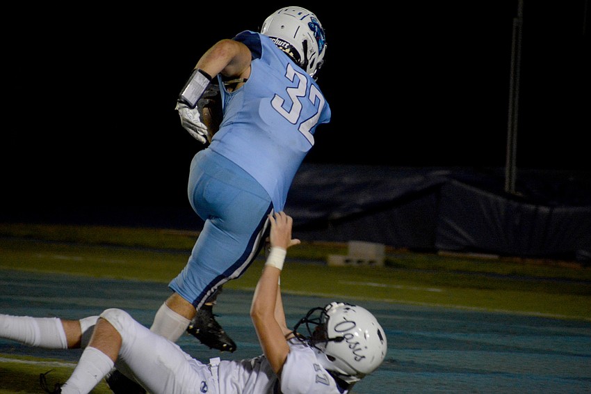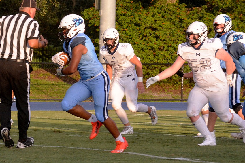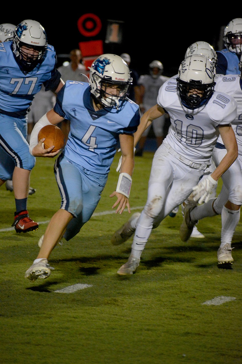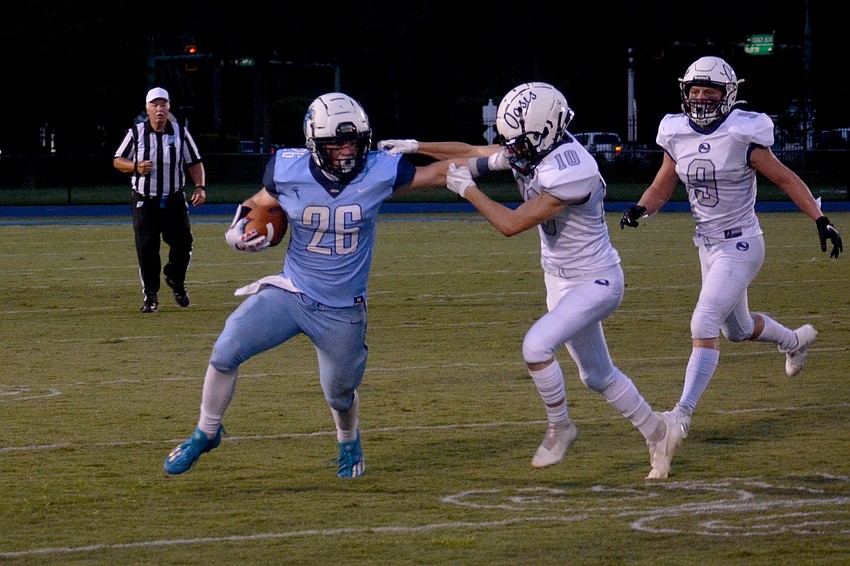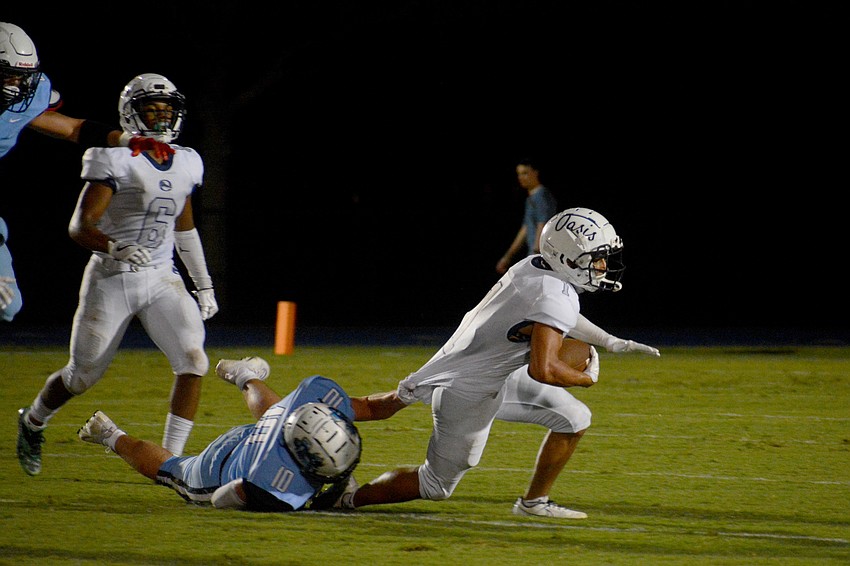 The Out-of-Door Academy fumbled on its opening possession against Oasis High on Friday night and the Sharks took advantage, scoring a few plays later. ODA would respond with a 65-yard touchdown run from freshman Allen Clark and a two-point conversion, but Oasis didn't flinch, connecting on a long flea flicker and a subsequent goal-line touchdown run. After shutting out Berean Christian 28-0 a week ago, ODA trailed Oasis 14-8 after one quarter and was getting gashed on defense.Â
