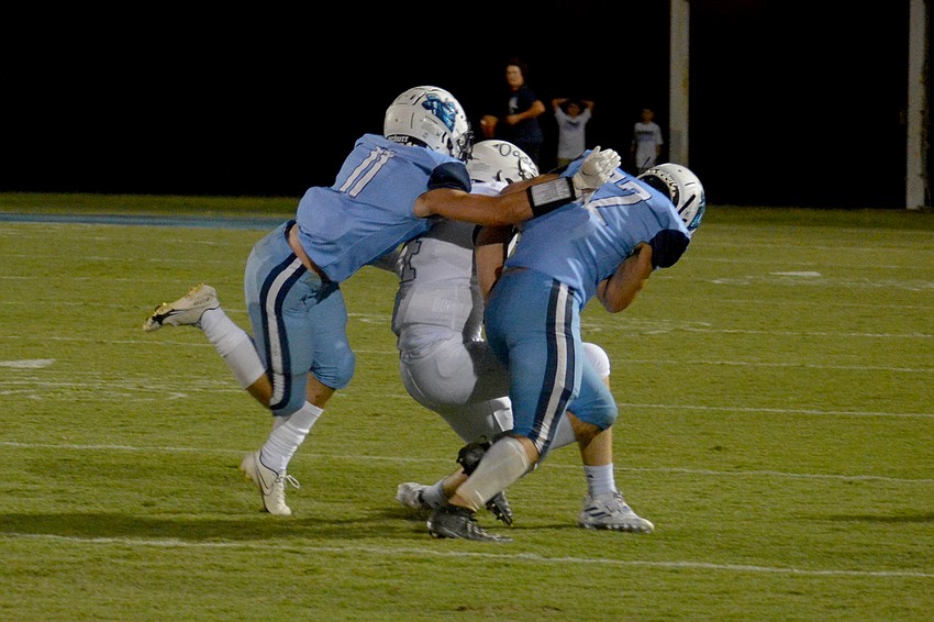 Defensively, the Thunder gave Oasis sophomore quarterback Parker Smith fits, picking off three of his passes — one each by sophomore Frankie Clark, senior Jason Albano and freshman Dylan Walker.Â