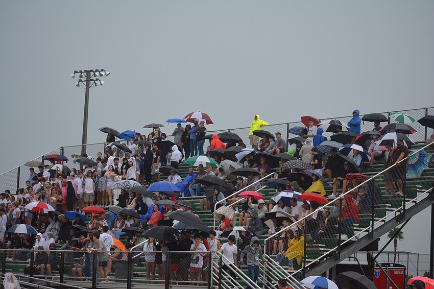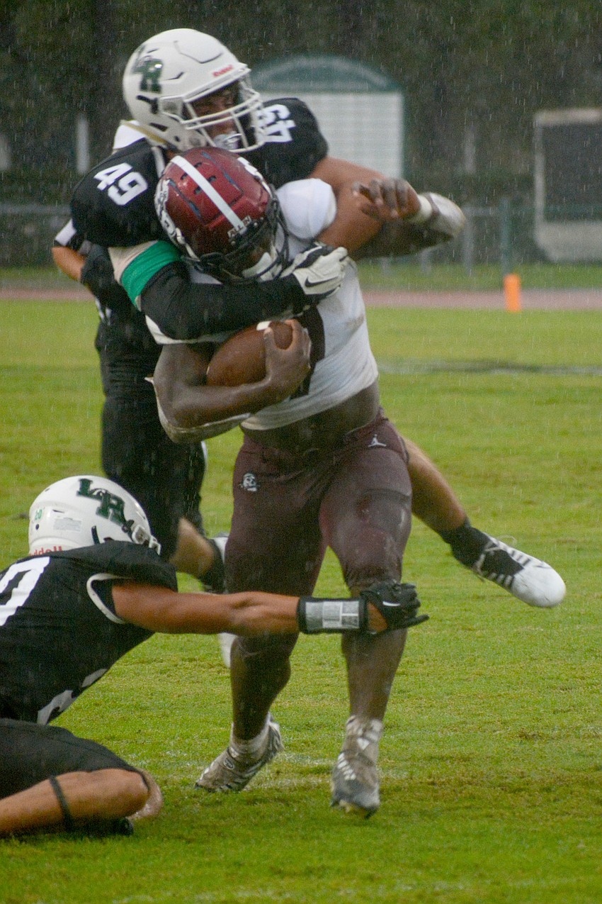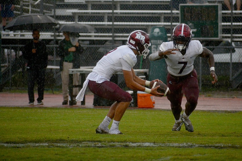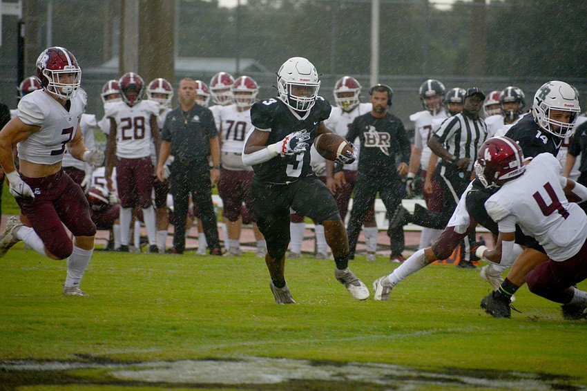 Lakewood Ranch High football entered its Friday night home game against rival Braden River High having lost six straight games in the series. On Friday, the Mustangs started the game like a team determined to end that streak. Led by senior running back Kevin Everhart and junior quarterback Clayton Dees, who was making his second career start, Lakewood Ranch stampeded down the field and punctuated its opening statement with a five yard touchdown run by Everhart, who was mobbed by his teammates on the sideline as a steady dose of rain arrived.Â
