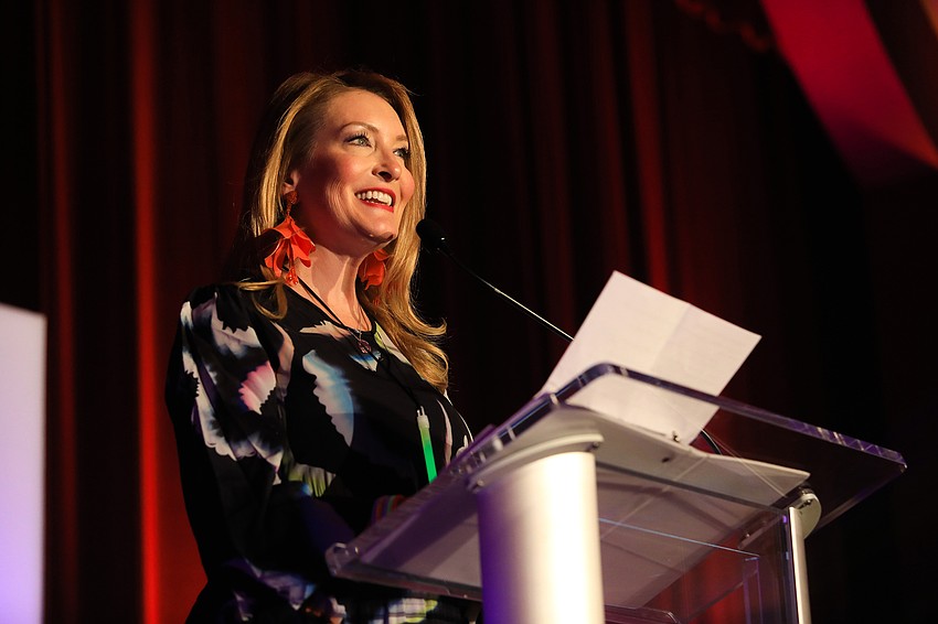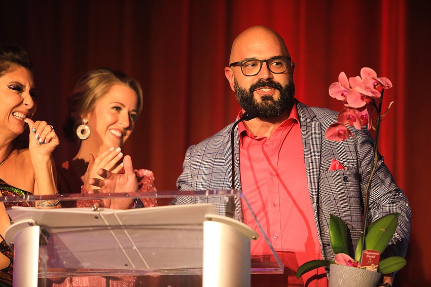 Honorary co-chair Emily Walsh then took to the podium to speak to the crowd and introduce co-chairwomen Monica Kelly Cure and Donna Koffman. The pair surprised Capote with flowers and appreciation for his work bringing the 2022 CANDance event together.Â