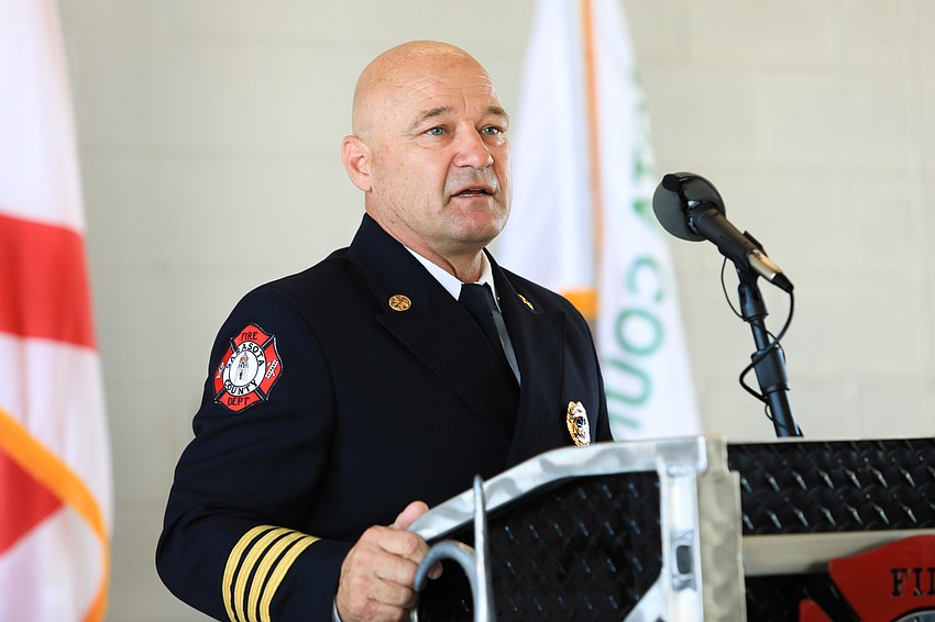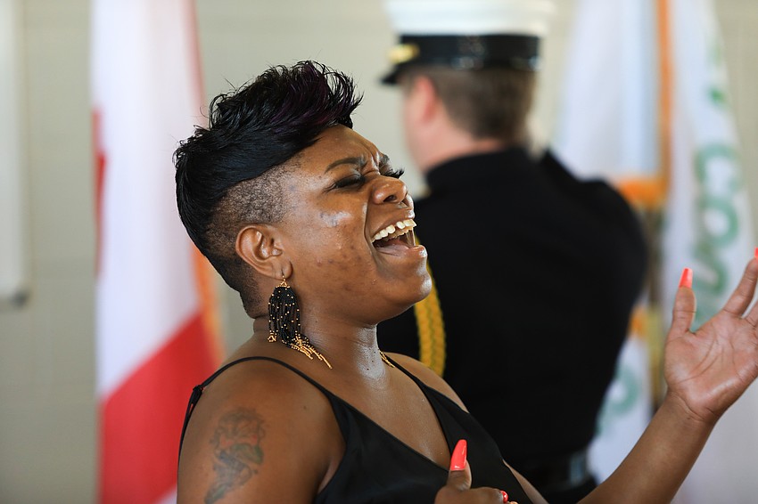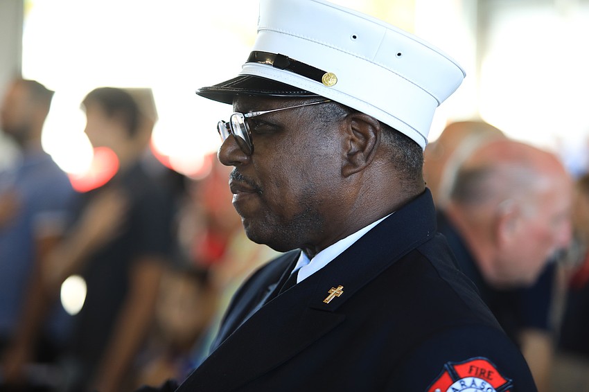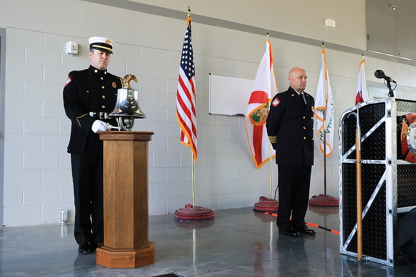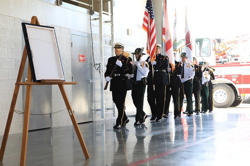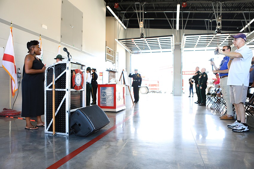 At SFCD Station #9, the morning ceremony, led by the Sarasota County Fire Department and Sarasota County Sheriff's Office, started off with a flag detail followed by the national anthem sung by Shantel Norman.