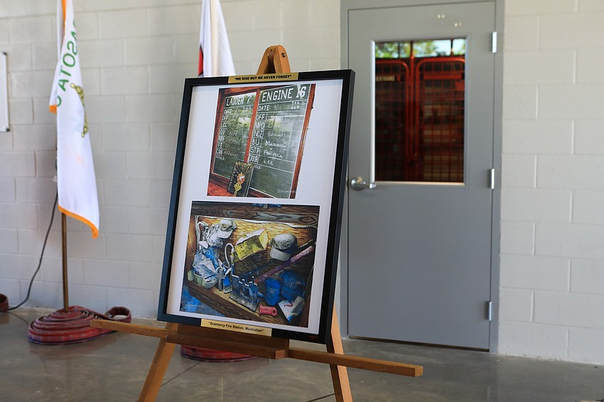 The Sarasota County Department Fire Department then received a framed canvas memorial art piece from Norman Schimmel.