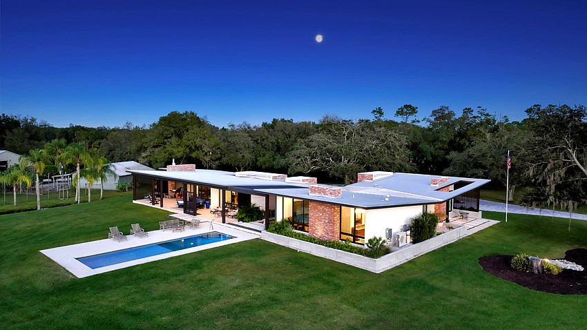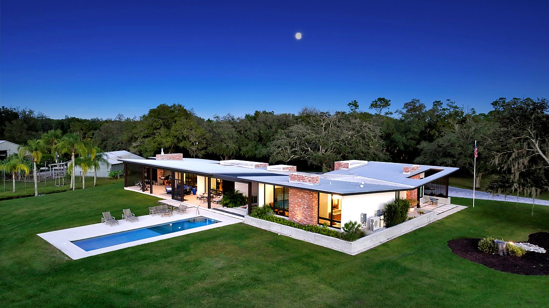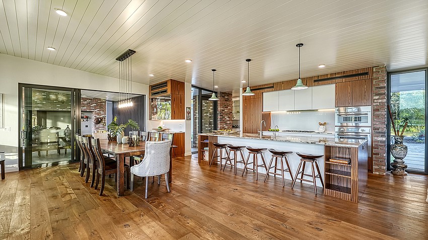Owners Russell and Juraci Ireland tore down the former main residence on the property and built a new one in 2019. The 3,135-square-foot main residence features an open floor plan designed by Sweet Sparkman Architects and built by Josh Wynne Construction that spreads over a single-level structure linking indoor and outdoor areas by open-air beezeways.