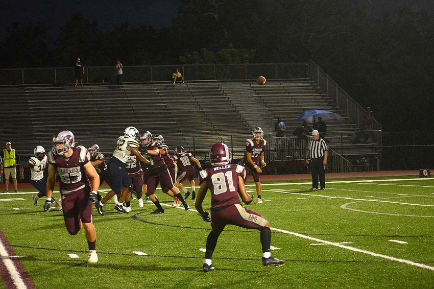 After going up 21-0 on Lehigh High (1-3) in the first quarter thanks to a Lauriel Trotman 10-yard run, a Deshaun Olave pick six and a 34 yard throw from Jackson Dawson to Luke Petitta, the Rams started making mistakes, leaving Lehigh receivers open in the secondary and turning the ball over on offense. By the time halftime hit, the game was tied at 21, and the second half promised more unpredictability.Â