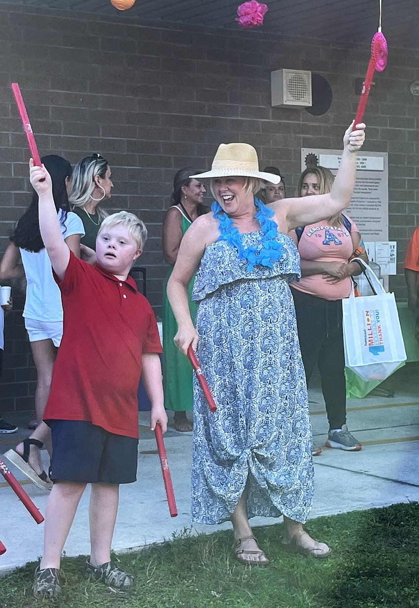 Christina Evans and her fourth grader Eli Evans had fun dancing to "Los Machetes."